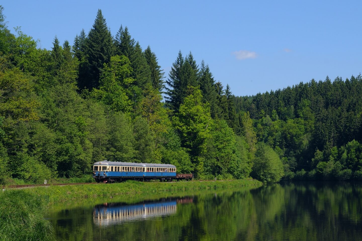 Auf der Trasse der Regentalbahn schlängelt sich im Sommer der Zug durch den Wald. Freiwillige der Wanderbahn im Regental e.V. sorgen seit 1991 dafür, dass man diese wunderschöne Bahnstrecke mit dem historischen Triebwagen der Länderbahn erleben kann.