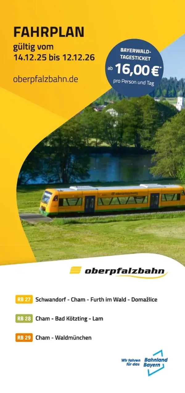 Enthält Fahrpläne der Linien RB 27 (Schwandorf - Cham - Furth i. W. - Domazlice), RB 28 (Cham - Bad Kötzting - Lam), RB 29 (Cham - Waldmünchen).