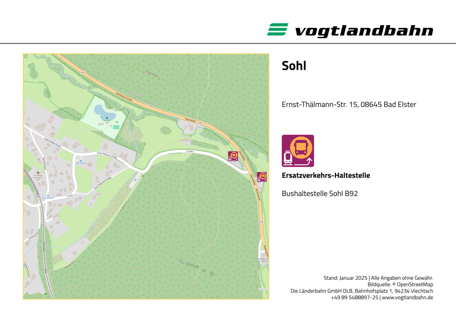 Der Gegenzug VBG 80230 entfällt ebenfalls zwischen Bad Brambach und Adorf (Vogtl). Ersatz durch Bus (EV)!