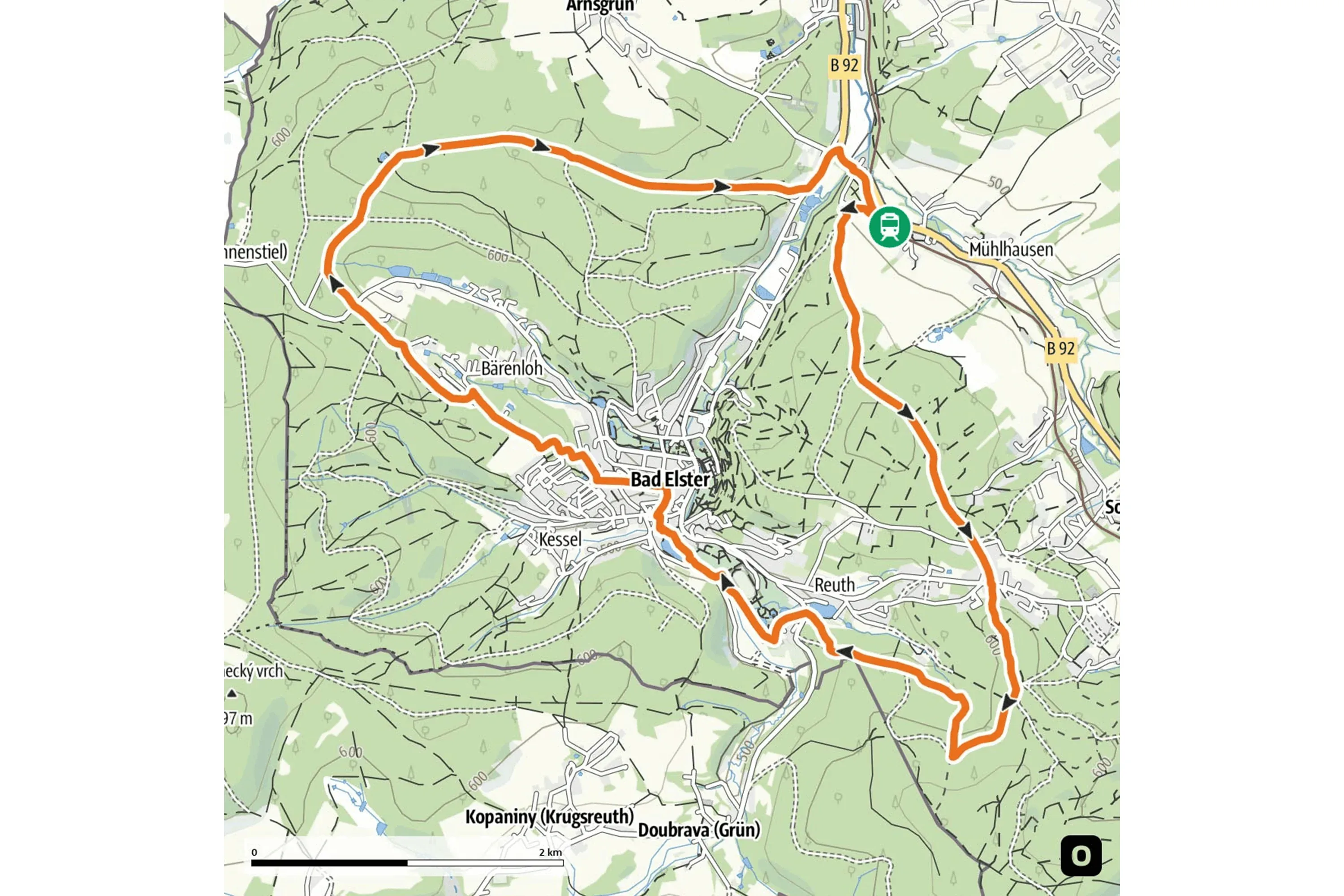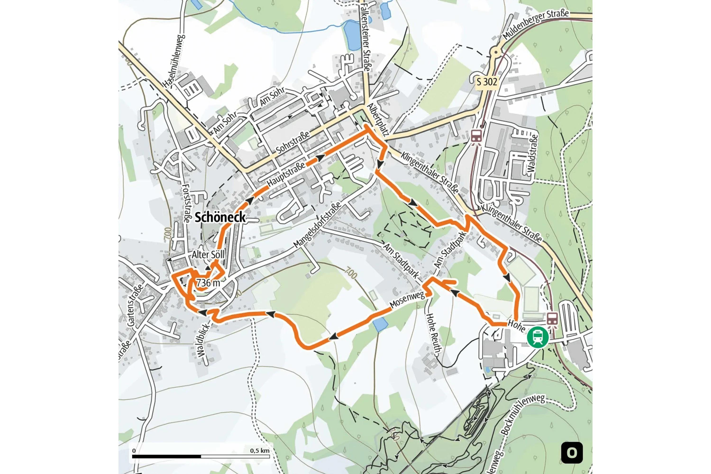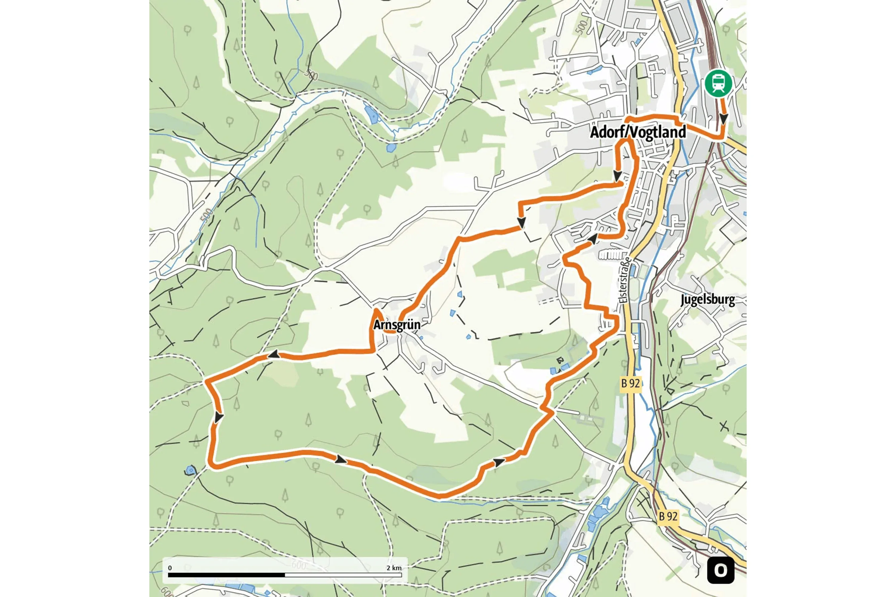 Die Wanderung beginnt am Bahnhof Adorf und führt über das historische Stadtzentrum und Arnsgrün in das Naturschutzgebiet Zeidelweide. Vorbei am „Klein Vogtland" und dem botanischen Garten geht es zurück zum Bahnhof.