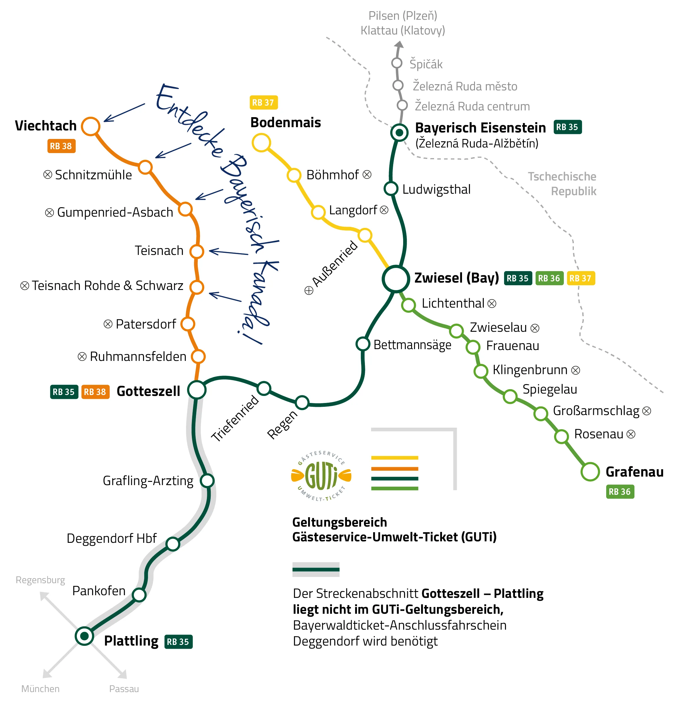 Upozornění: Na jízdenkovém automatu Deutsche Bahn na nádraží Plattling není možné zakoupit waldbahn denní jízdenku. Tento typ jízdenky si prosím zakupte online prostřednictvím bahn.de.